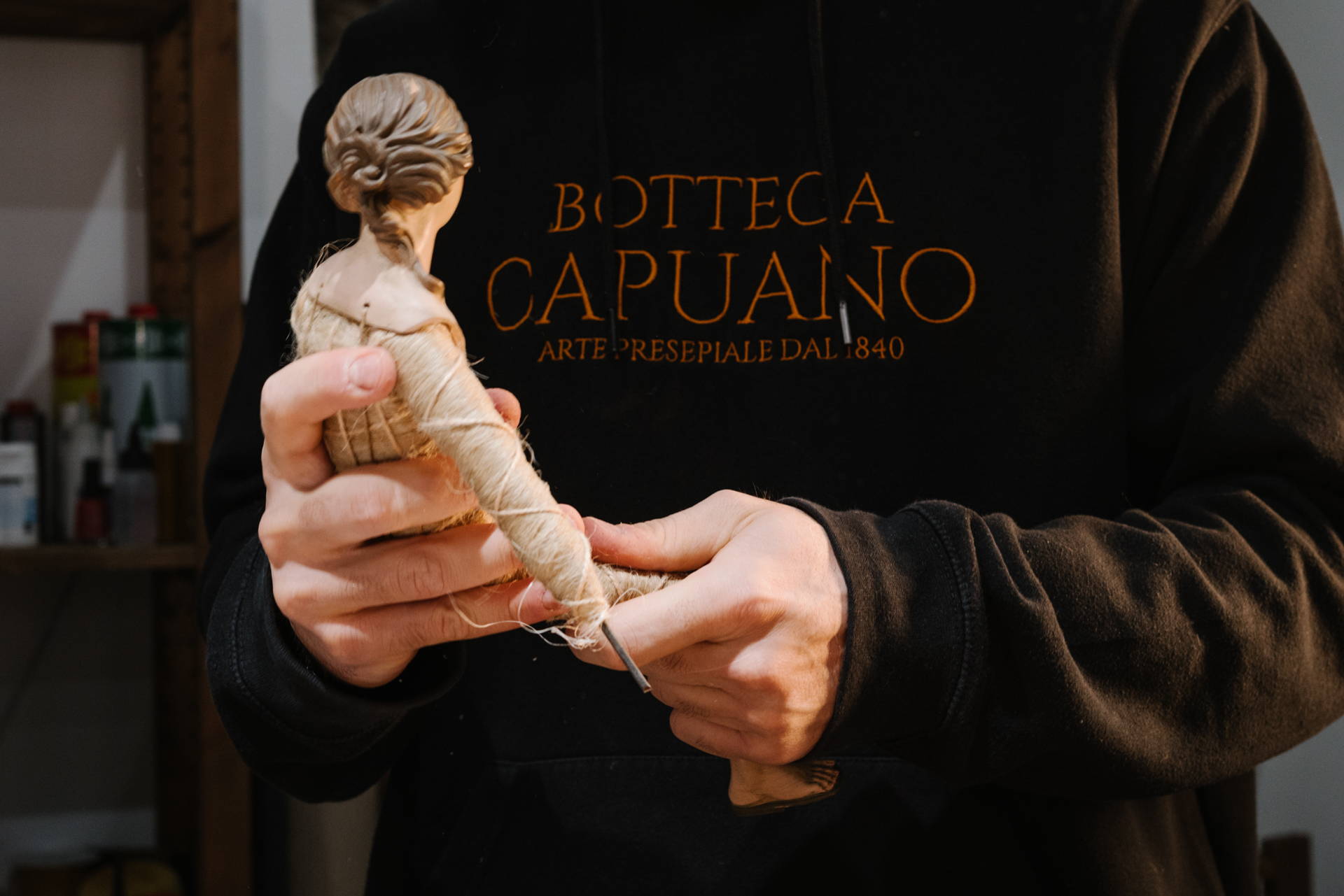 tra mani esperte, gesti tramandati e cura dei dettagli, nel pieno rispetto delle tecniche antiche dell’arte presepiale napoletana.