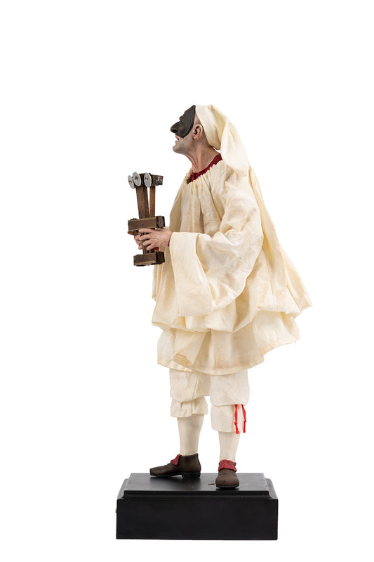 Posteriormente, sus orígenes se atribuyeron a Silvio Fiorillo , un dramaturgo de arte del siglo XVI que, durante sus representaciones, solía usar un tipo de máscara completamente diferente a la que conocemos hoy; se trata, en realidad, de una típica "media máscara", también llamada "lobo", con una gran nariz curva, un rostro lleno de arrugas y ojos muy pequeños.